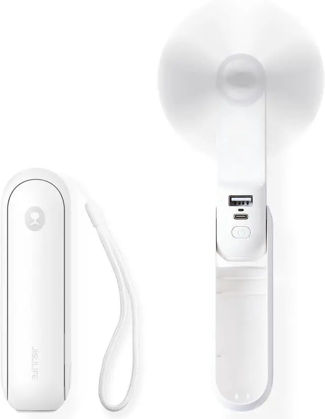 JISULIFE Portable Handheld Fan, Mini Personal 3-In-1 with Power Bank&Flashlight, 12-19 Hrs USB Rechargeable Battery Pocket Fan for Travel/Summer/Vacation/Concert, Essential Gifts for Men/Women-White