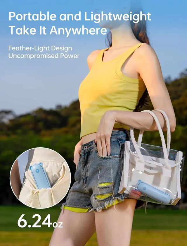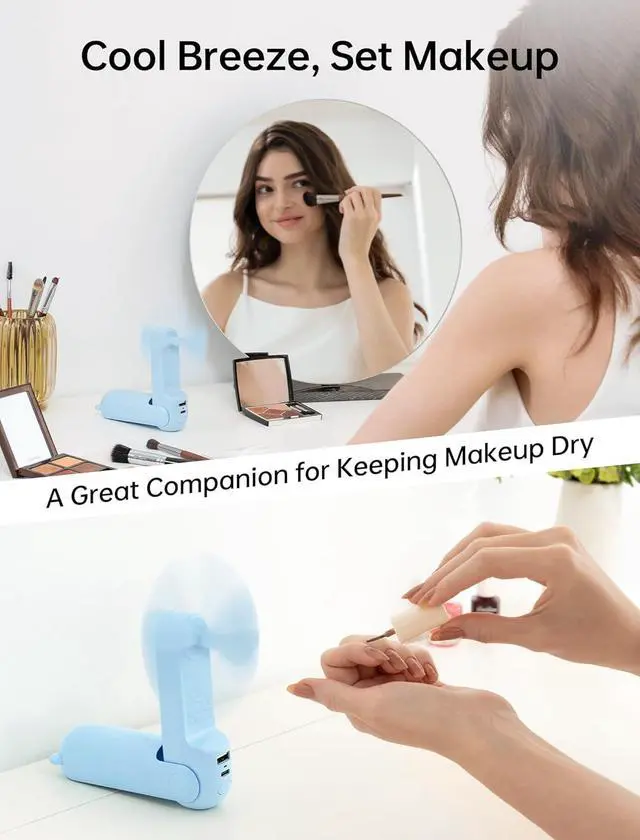 Foldable Design and Mini Size: The folding design makes it easy to be carried and stored. Besides, with the capsule shape(5.1*1.65*1.65 inch, weight: 6.38 OZ), this rechargeable fan can hide the fan blade, small and easy to slide into your pocket and purse.Gifts choice for Christmas & New Year