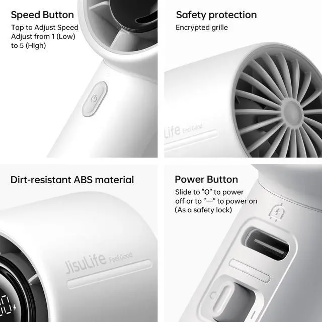 Safety Lock & Dense Grille: JISULIFE personal fan has added safety locks and thickened grille designs to prevent accidental touches on the switch and contact with the blades. Enhanced protection, enjoy worry-free airflow. In addition, JISULIFE provides a 1-year warranty period. During this time, our dedicated support team is available to assist you with any issues arising during product usage