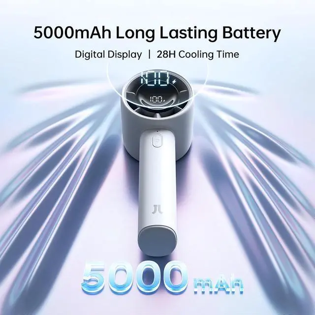 Long-Lasting Battery & LED Power Display: Equipped with a 5000mAh battery (fully charged in 2-3 hours), this rechargeable portable fan keeps you cool for hours on a single charge! Enjoy up to 28 hours of runtime in low-speed mode. The built-in LED power display lets you monitor battery life at a glanceensuring all-day airflow wherever you go!