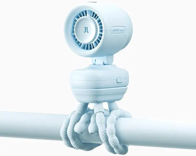 JISULIFE 2026 Stroller Fan Small & Stylish with 38H Cooling, Soft Night Light, OneClick Detachable for Stroller or Desk, Safe Baby Fan for Crib Car Seat Nursery Travel, Gifts for Baby Mom (Blue)
