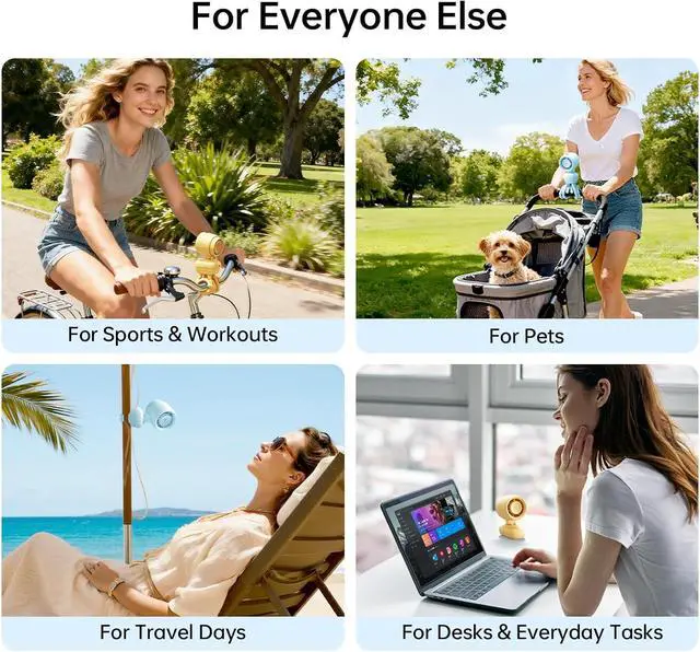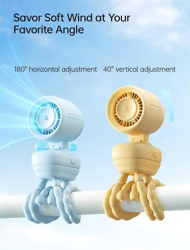 OneClick Dual Use: With its smart base design, this fan easily switches between stroller and desktop use. A single click detaches the base, instantly transforming it from a stroller fan into a compact mini desk fan - perfect for adapting to any scene at home, outdoors, or on the go