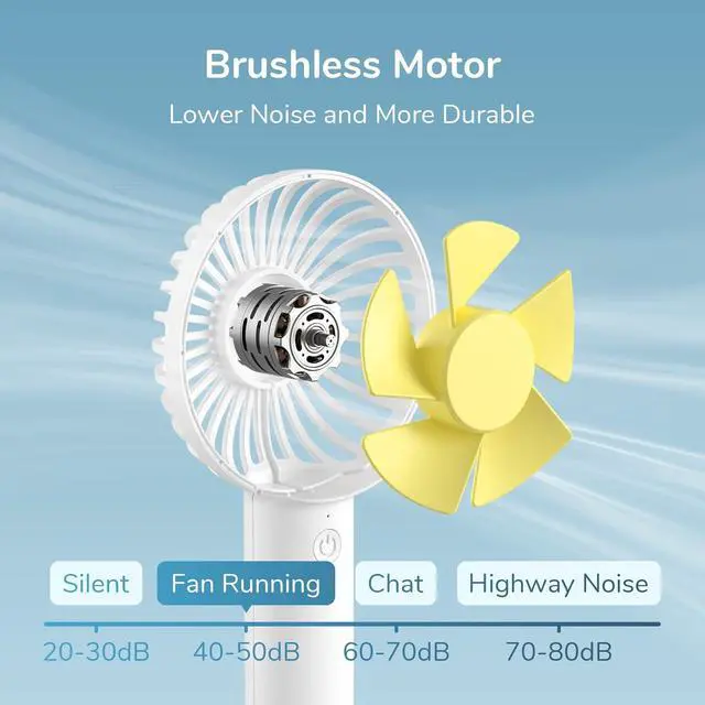 3 Wind Speed Gears: JISULIFE Hand Held Fan easily supports 3 wind speed adjustments with 1 button. Speed 1 is light wind for about 10 hours, Speed 2 is soft wind for 7 hours, and Speed 3 is strong wind for 3 hours