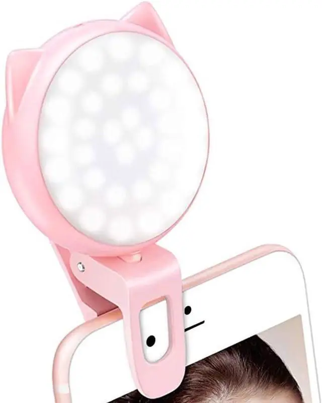 OURRY Selfie Clip on Ring Light, Mini Rechargeable 9 Level Adjustable Brightness Modes with 32 LED, 2-8 Hours, USB Flash Lighting for iPhone/Android, Cell Phone Photography,Video, Vlogging - Pink