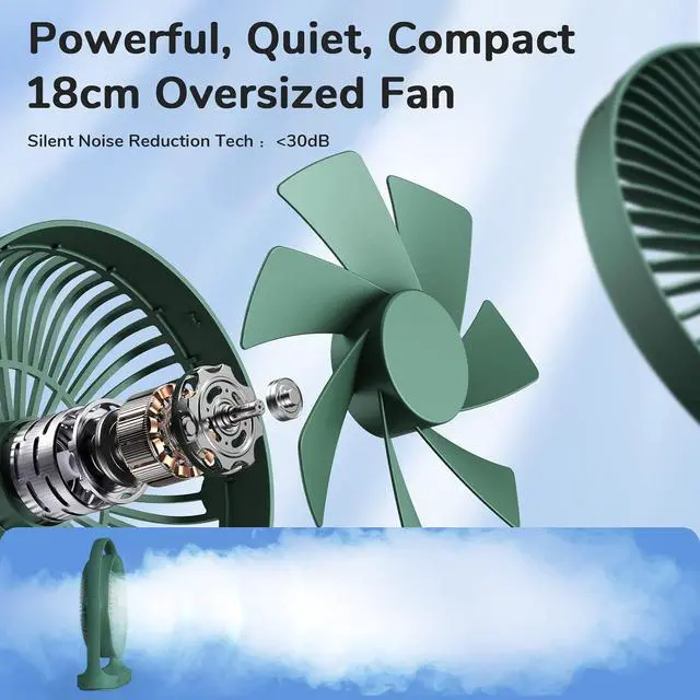 18cm Oversized Fan and Washable DesignCompared to other desktop fans, JISULIFE desk fan with 18cm oversized fan, the fan assembly supports 330° vertical rotation, allowing you to direct airflow to your liking.while the front cover can be easily removed for cleaning, still clean and bright for next summer.