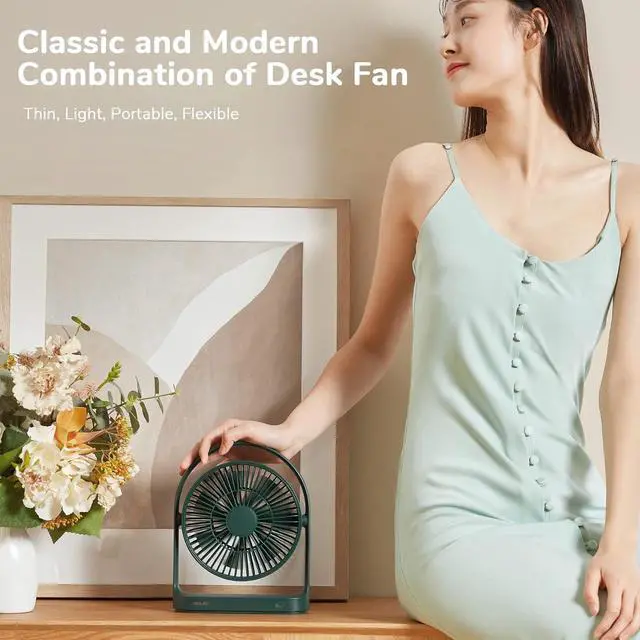 JISULIFE Desk Fan, Small Portable Battery Operated Desktop and 4000mAh USB Rechargeable Electric Table Fan with 4 Speeds, Max 15 Hrs, Strong Airflow, Ultra Quiet for Office/Room/Travel-Green
