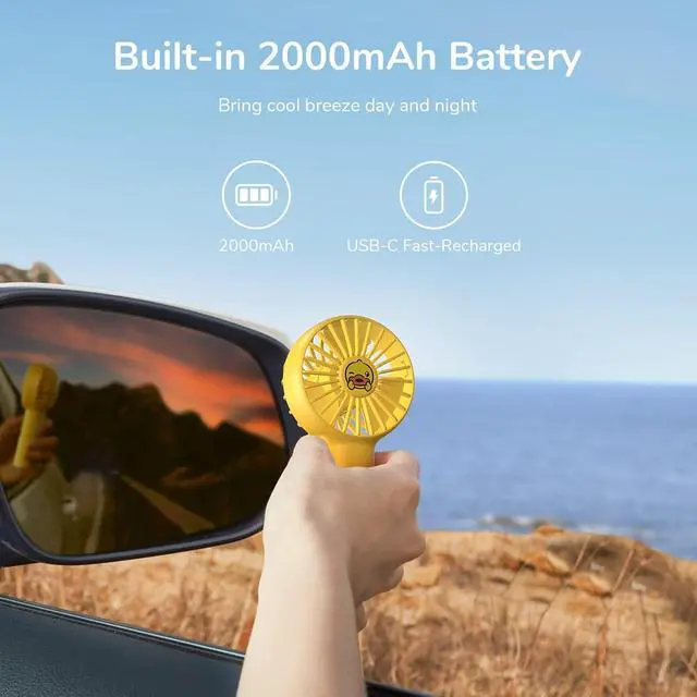 JISULIFE Mini Fan Battery Operated Handheld with 2000 mAh Battery or USB Powered Personal Mini, 3 Speeds, Enhanced Airflow, Rechargeable Quiet Pocket for Home,Outdoor-Duck