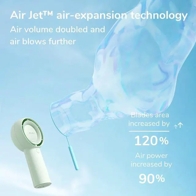 Patented Turbocharged Airflow: JISULIFE Handheld Turbo Fan has 2 vortex tech patents: Air Turbo and Air Jet. The airflow is accelerated and compressed by the air duct turbine, the wind is stronger, and the wind feeling is closer to nature
