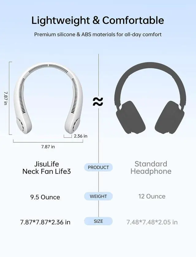 Hands-free Design & Fashionable - Hand-free neck fan was designed as a headphone to free your hands anywhere; The fashion style makes you look cool and you can take it anywhere in hot weather. Good fashion item for ur OOTD as well!