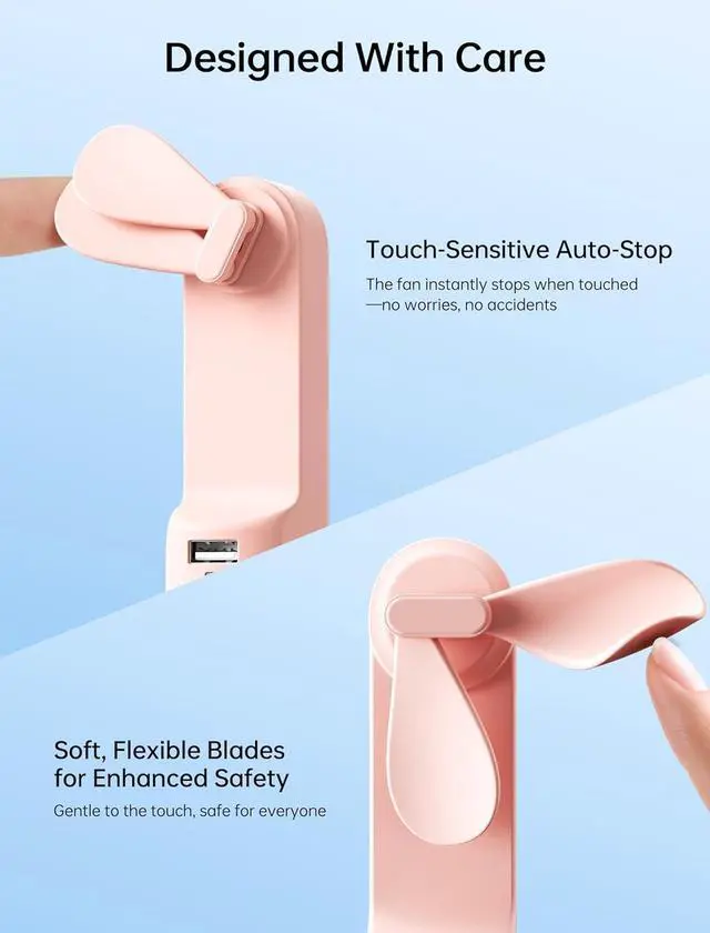 3-Stage Transformable Fan: 3-stage transformable design allows for easy storage with hidden blades, making it compact enough to carry in your pocket; Use it as a handheld fan at 180° fold or as a desktop fan at 270° fold for added versatility