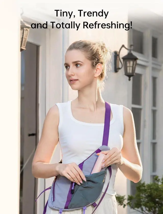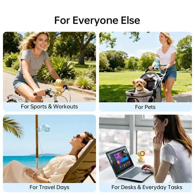 3. A Palm-sized Backup Charger: Designed with a pocket size, this portable fan easily fits into any bag for on-the-go convenience; Doubling as a backup power bank, it keeps your devices charged when needed, making it your travel and summer essentials