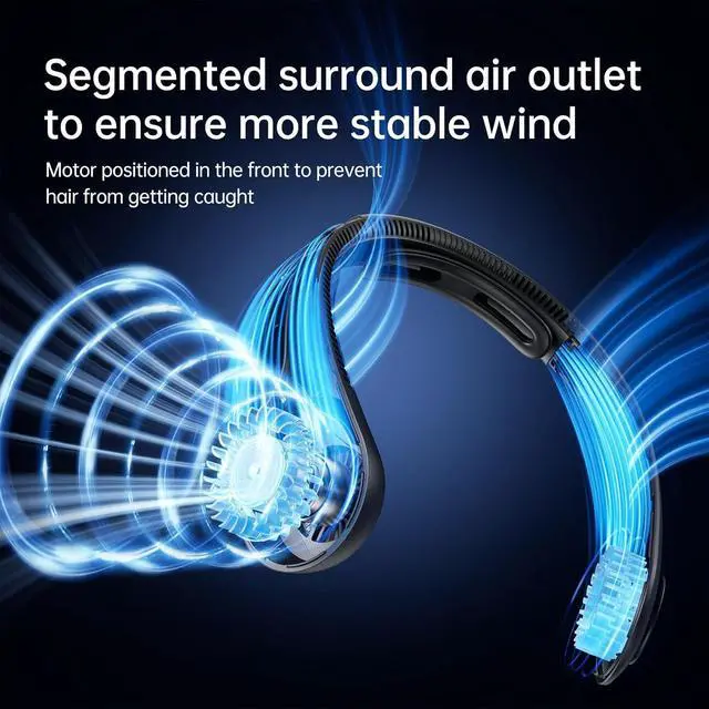 100-Speed Turbo Power with High-Efficiency Motor: Neck fan with 9-blade turbo fan and brushless motor blasts 8.5m/s winds (10cm distance) at 40,000 RPM max100 adjustable speeds from breezy to hurricane-grade cooling! High performance ensures rapid cooling, roller adjusts wind speed, balances strong power and portability, and provides an efficient heat dissipation experience integrated with wearable design
