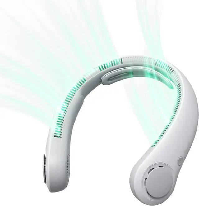 Strong Airflow & 5-speed Adjustment: The neck fan that blows cold air has 2 air inlets and 80 air outlets, with air outlets on both sides and the back, which can provide 360° cooling for your neck and face. The personal fan provides 5 adjustable speeds, and you can press the power button repeatedly to adjust the appropriate wind speed of the Cooling hanging fan to meet your needs