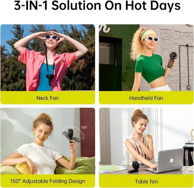 LIFE7-Long Lasting Cooling with 19.5 Hrs Max: From early morning commutes to late-night camping trips, enjoy up to 19.5 hours of cooling at speed 1; This personal fan is a lifesaver for long office days, or any outdoor activities
