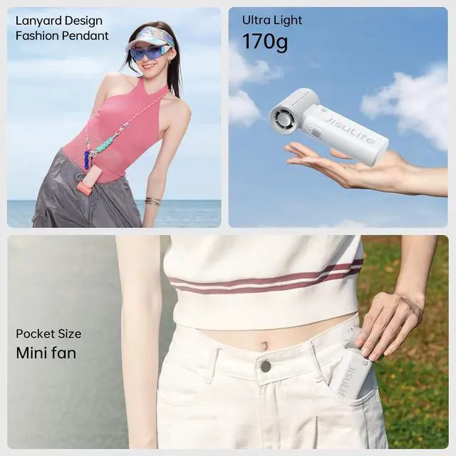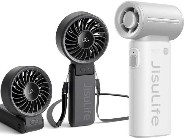 LIFE9-Powerful Wind, Fast Cooling: JISULIFE powerful portable turbo fan adopts advanced 9-blade design, with high-speed three-phase brushless motor, providing a maximum wind speed of up to 10m/s. 40000 RPM, which is four times that of ordinary handheld fans, brings you a strong and stable wind experience