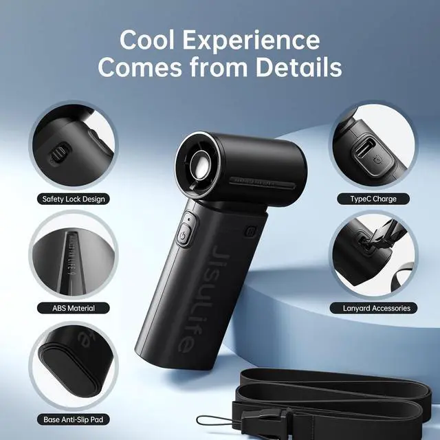 • LIFE9-Long Battery Life, 22 hours of Coolness: JISULIFE handheld mini fan is equipped with a 5000 mAh battery capacity, which can provide up to 22 hours of battery life, ensuring that you stay cool during travel, concerts and outdoor adventures