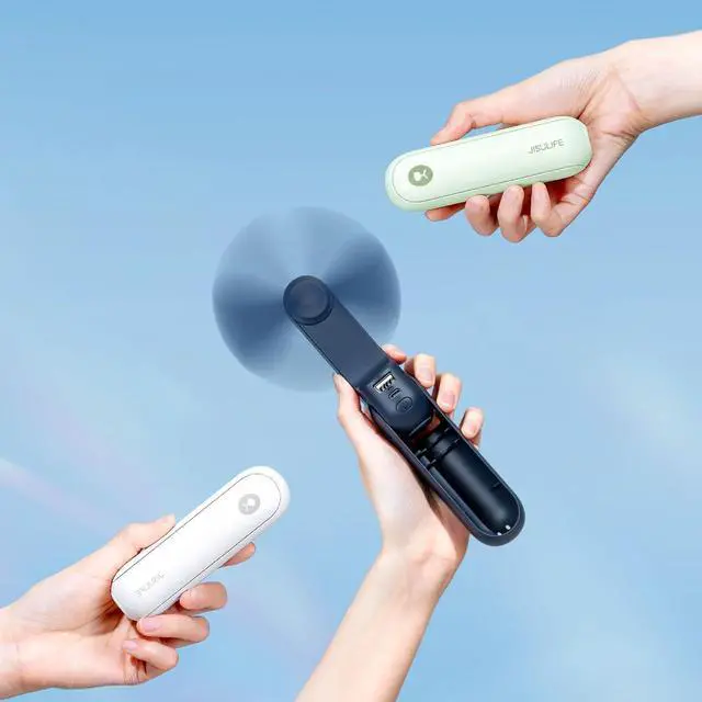 Power Bank Function and Quiet Operation: The USB output port turns the mini hand fan into a power bank(2000 mAh) in an emergency, providing power for mobile phones. With no frame design, make the noise low to 50db, which causes no disturbance during work