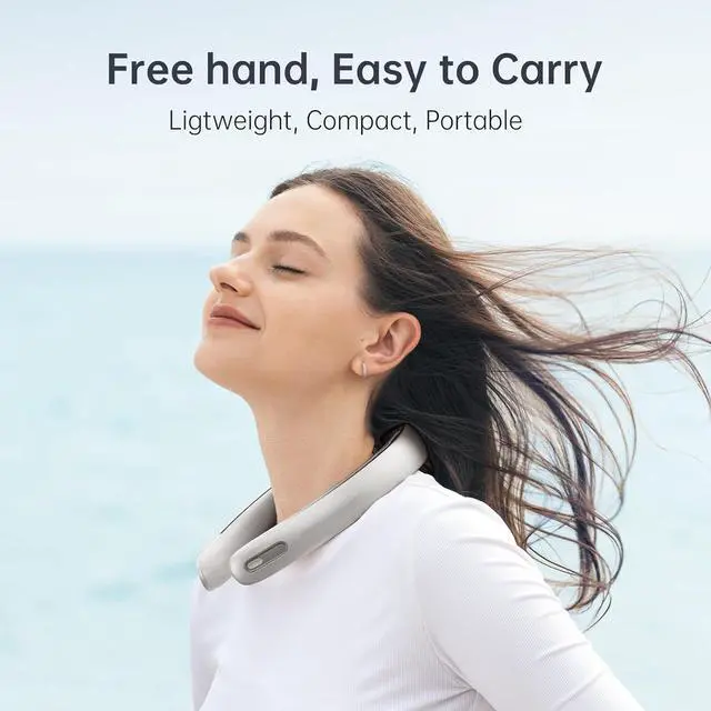 100 Adjustable Speeds: The bladeless neck fan has two high-performance motors that make the wind powerful, with a maximum speed of 8700 rpm, it can be adjusted from 1 to 100 by stepless knob to meet your different needs for instant cooling