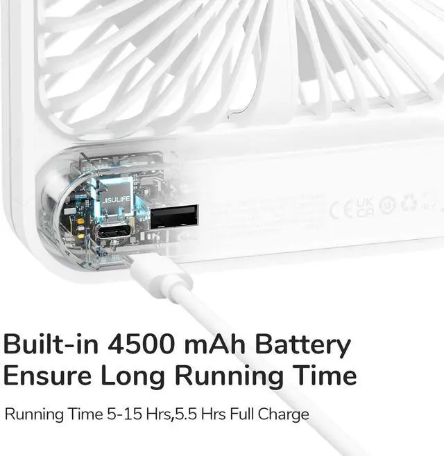 Digital Display - Power Reminder The FA53 travel fan is equipped with a high-definition digital display screen, which can show the current wind speed and remaining battery power, so you no longer need to worry about the remaining power of the fan. When the battery of this mini fan is low, you can arrange for charging in advance, ensuring a cool companion on every trip.