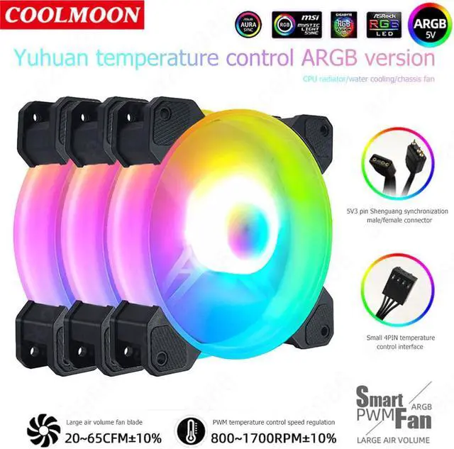 COOLMOON 12cm 12V 4Pin PC Case Cooler Fan for Computer Chassis CPU 5V 3Pin ARGB Lighting PWM Radiator Cooling Heatsink
