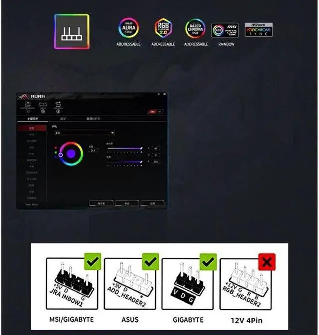 4pin ARGB interface, realize the motherboard software control fan lighting and other ARGB products synchronous color change.