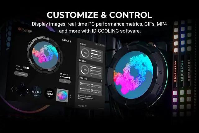[Customize & Control]The space software enables you to switch between a variety of display options such as fan speeds, CPU temps, images, GIFs, MP4 and more.