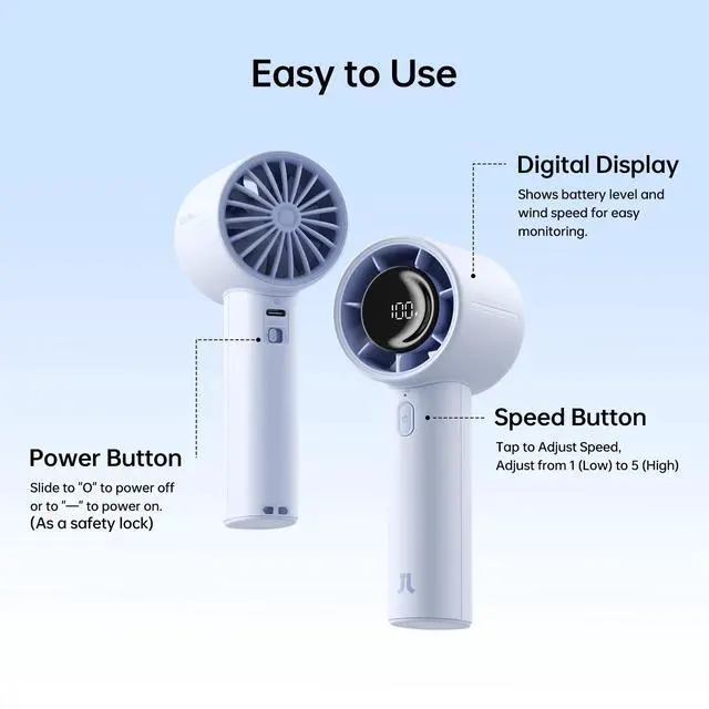 ![Alt view image 5 of 7 - JISULIFE Portable Handheld Fan, Powerful Turbo Mini Fan [28Hrs Max Cooling], Digital Display, 5-Speed, 5000mAh USB Rechargeable for Travel, Summer, Gifts for Women Men](https://c1.neweggimages.com/productimage/nb640/BYKGD2512300C9T7I40.jpg)