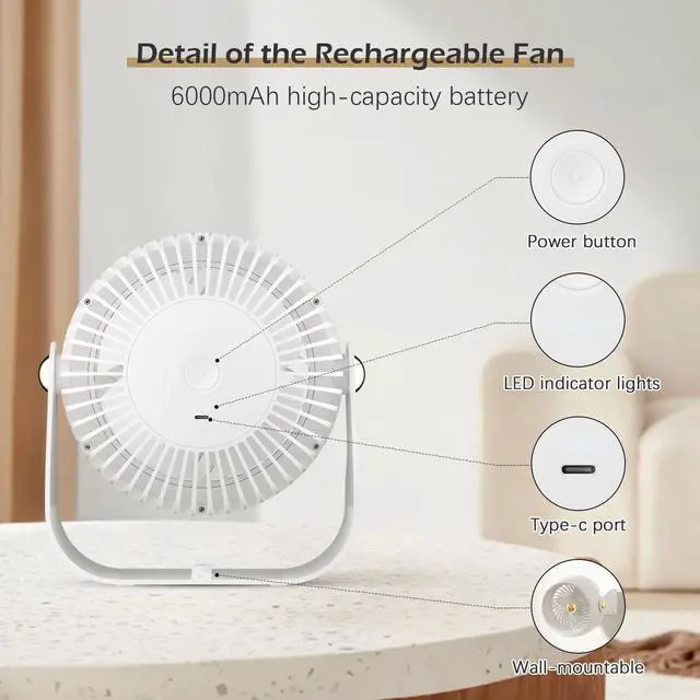 No need to be plugged in all the time, the USB fan has a built-in 6,000 mAh battery and can be used anytime with a full charge.