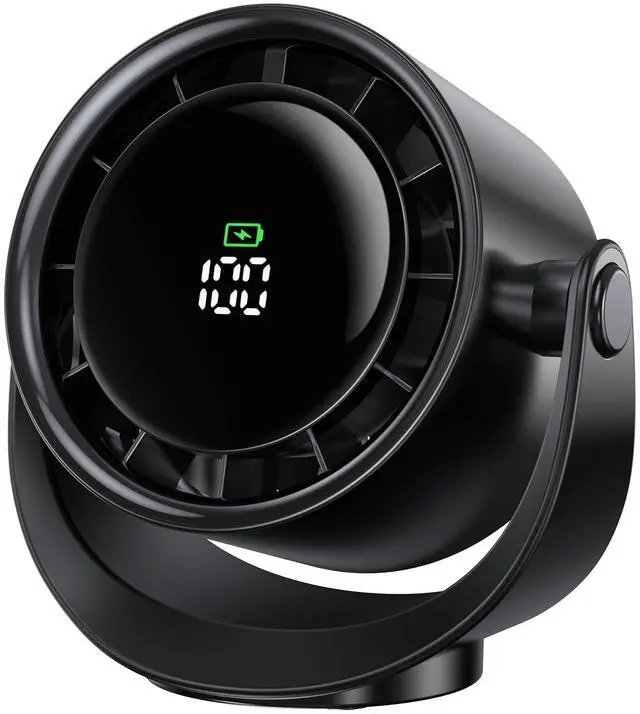 Stay cool wherever you are with this powerful, portable desk fan. With a 4000mAh rechargeable battery, it offers up to 17 hours of cooling. Choose from 5 adjustable speeds for a customizable breeze, from a light breeze to a powerful gust. The high-speed fan delivers strong airflow, while the 360° rotation lets you direct the breeze exactly where you need it. Compact and lightweight, its perfect for work, camping, travel, or home use. The LED display shows wind speed and battery life for easy monitoring. Keep cool on the go with this versatile fan!