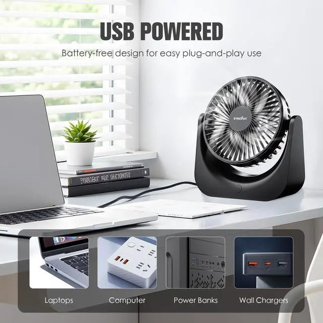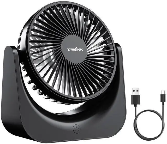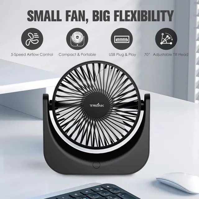 TRILINK Small USB Desk Fan 5-Speed Mini Table Fan with Adjustable Tilt, Ultra Quiet, USB Powered, Portable Cooling Fan for Home, Desktop, Bedroom, Bed, Office, Travel, and Camping (Black)