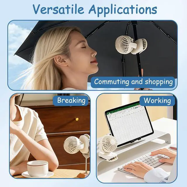 Experience refreshing comfort wherever you go with the ormos Mini Bubble Clip Fan. This versatile 360° rotatable fan offers three speed settings to customize your cooling experience with natural wind flow. The innovative design features a retractable grip that transforms from handheld to clip-on in seconds, securing firmly to desks, strollers, gym equipment and more. Powered by a long-lasting 1200mAh rechargeable battery that provides up to 8 hours of continuous use, this portable companion is perfect for commuting, travel, outdoor activities, and everyday use. The lightweight construction includes a convenient hanging strap and non-slip silicone base for maximum versatility. Enjoy powerful airflow up to 5.0m/s while the whisper-quiet operation makes it ideal for offices, nurseries, or any setting where silence matters. Whether you're working, exercising, or relaxing outdoors, this compact cooling solution delivers comfort without compromise.
