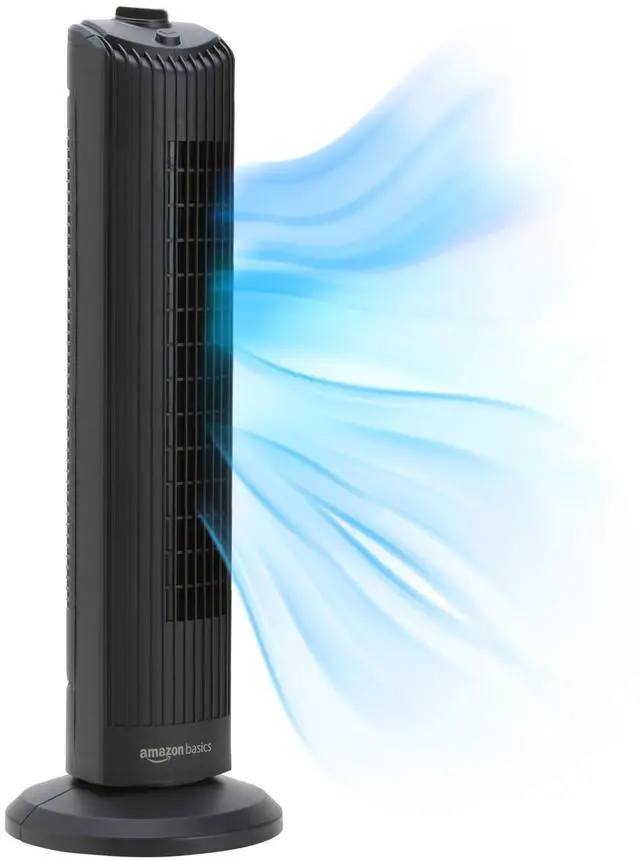 28" 60-Degree Oscillating Tower Fan with Powerful Airflow for Bedroom, Living Room, Office, 3 Speeds, Mechanical Control, Air Circulator, 35W, 27.8"H x 9.4"D x 9.4"W, Black