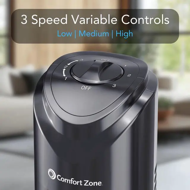 Experience optimal air circulation and airflow control with the 3-speed functionality of this 32" tower fan. Whether you prefer a gentle breeze, moderate airflow, or high-volume cooling, you can easily select the desired speed setting. With its oscillating performance, this fan disperses air across a wider area, optimizing air circulation throughout the room.