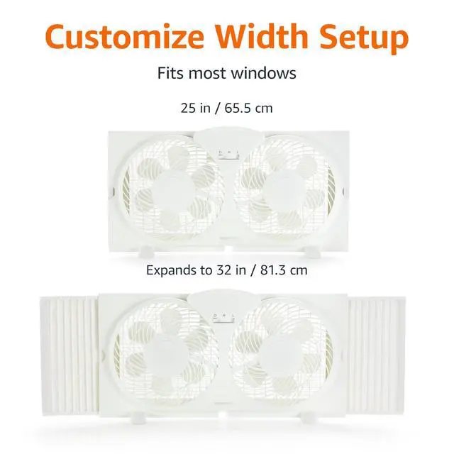 Twin Window Fan for Home Bedroom, 9 inch, Reversible Airflow, Exhaust Mode, Expandable Side Panels, Width Adjustable, 2 Speeds, Air Circulation, 68W, White
