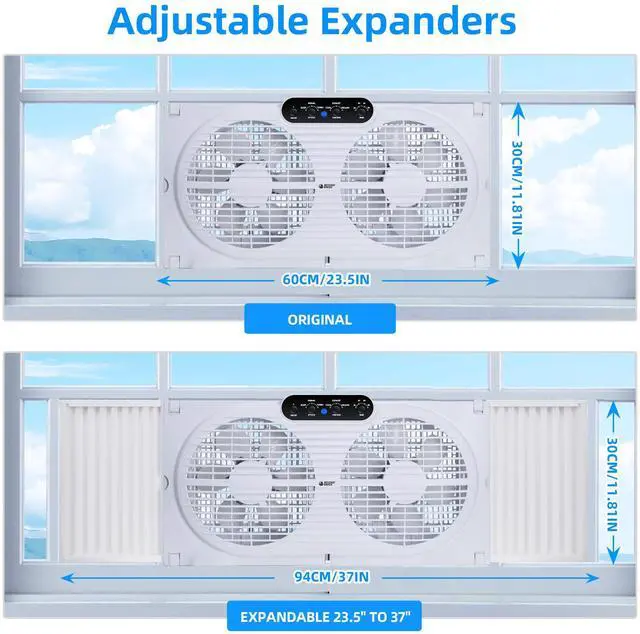 BEYOND BREEZE 9” twin window fan is easy to install with adjustable expander ranging from 23.5” - 37" . Please measure the size of your window before purchasing.