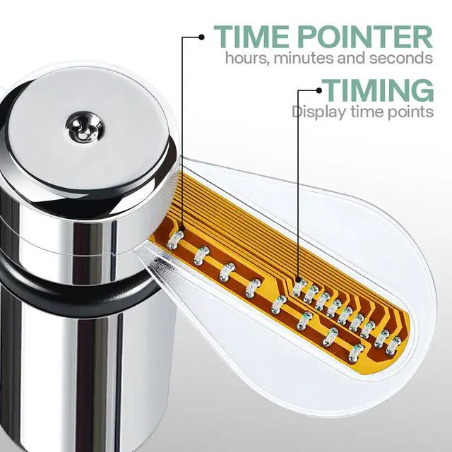 The technical design of the fan blade contains a chip that displays the correct clock scale by means of led light when the fan is in operation.