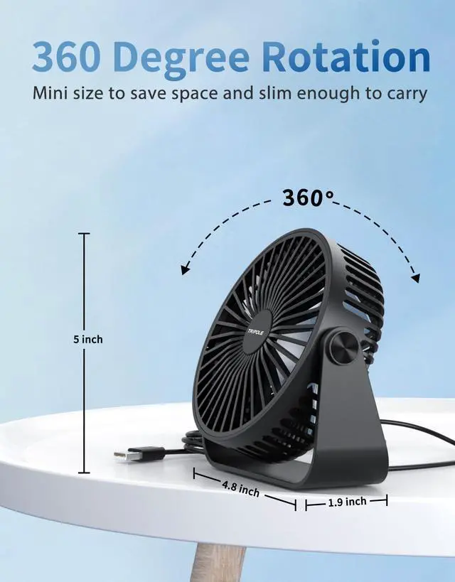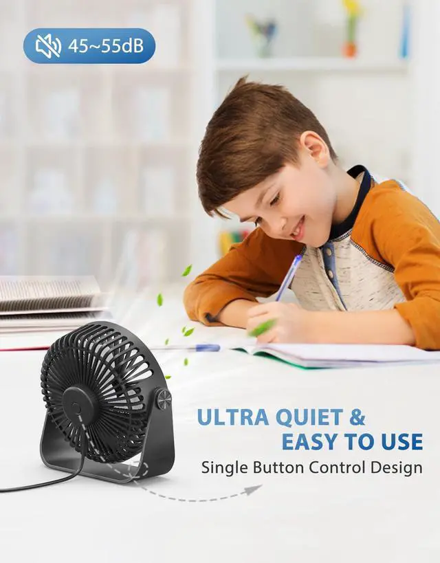 Universal USB Compatibility - This small desk fan can be conveniently powered by any USB port, such as your PC, laptop, power bank, AC adapter, or car charger. Stay cool and comfortable easily wherever you are