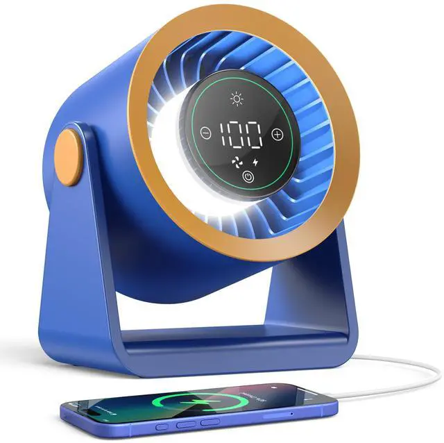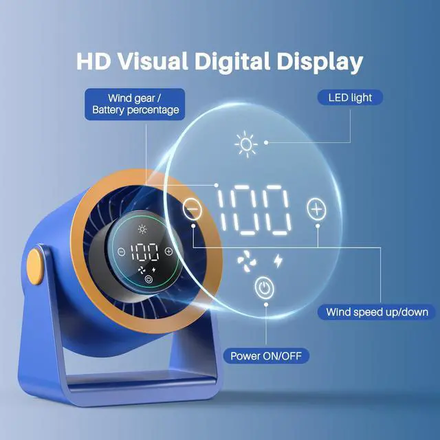 Powerful Desk Fan Utra-quiet for Bedroom, 15200mAh Small Turbo Bedside Fans for Cooling and Sleep, Personal Battery Powered USB Fans With LED Light, Digital Display, 105° Tilt (Blue)