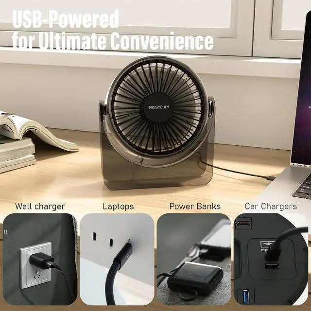 The USB desk fan is powered via a USB port, which can be connected to a laptop, power bank, or any USB-compatible adapter (5V output recommended).