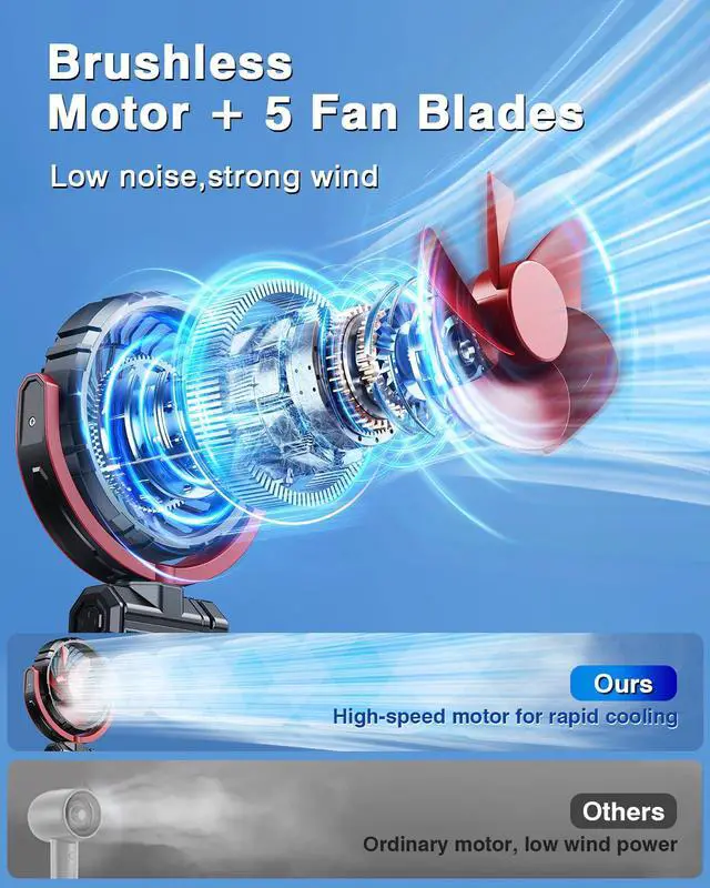 Strong Wind And Quiet The HIYJEN car fan applies advanced brushless motor technology and is cleverly paired with five high - efficiency fan blades. It not only improves energy efficiency and strengthens the wind power, but also significantly reduces the noise and vibration during operation. It is an outstanding addition to in-car accessories