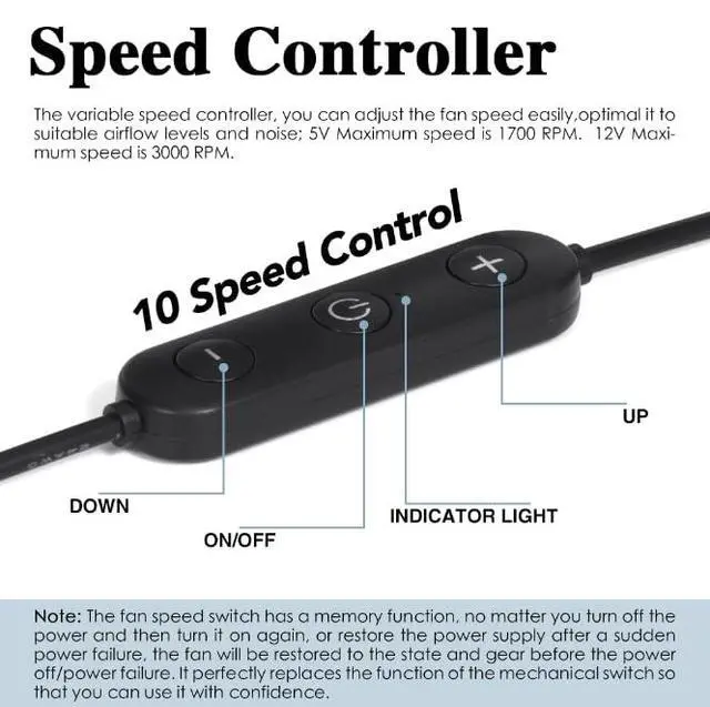 | Max Airflow | 5V(33CFM)-12V(67CFM) | 5V(60CFM)-12V(120CFM) | 5V(67CFMX2)-12V(124CFMX2) | 5V(60CFMX2)-12V(120CFMX2) | 5V(67CFM)-12V(124CFM) |