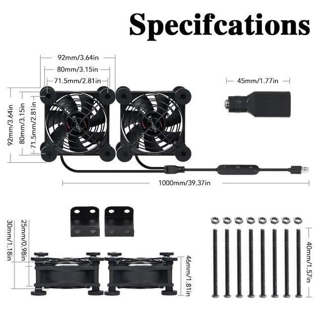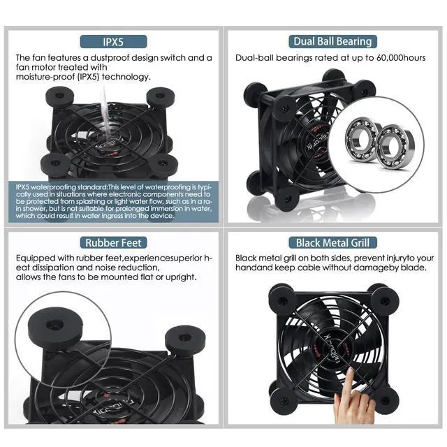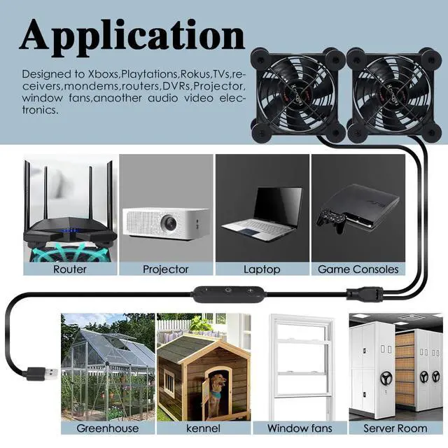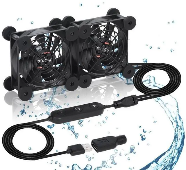 Dual 80mm Cooling Fan - 10-Speed USB 5V/DC 12V Power, IPX5 Waterproof for Tablet, TV, Router, Xbox, DVR, Computer Cabinet, Greenhouse & Kennel Component Cooling