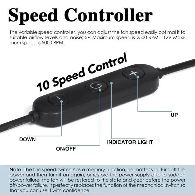 • 10 Speed: Take control of the airflow level with our specially designed speed controller. With 10 adjustable speeds, you can easily customize the cooling intensity to meet your specific needs. Whether you require a gentle breeze for a subtle cooling effect or a stronger airflow for more demanding applications, this fan has you covered.