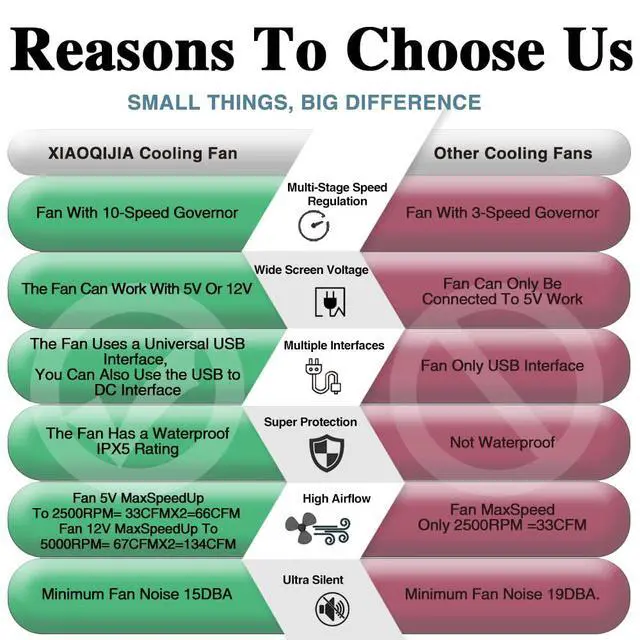 xiaoqijia Dual Quiet 140mm Fan with 10 Speed USB 5V Fan DC 12V IPX5 Waterproo...
