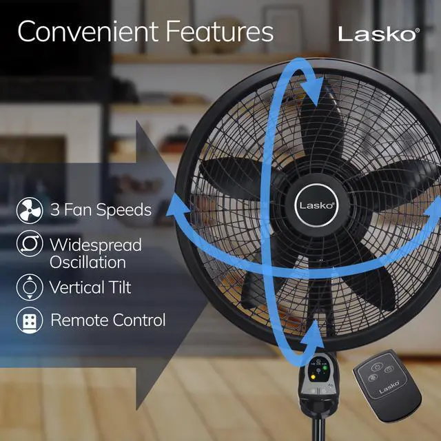 Lasko Cyclone 18" Adjustable Pedestal Fan with Remote Control, Black