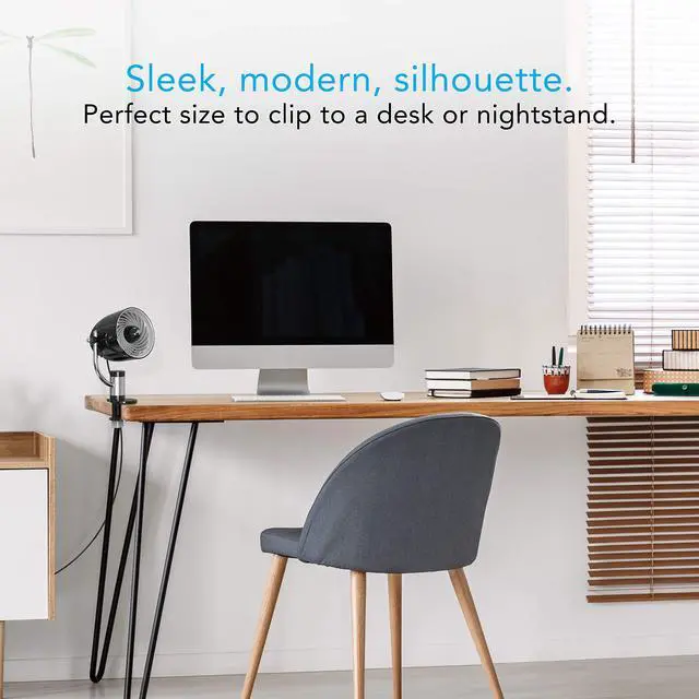 With the Pivot Clip series there is finally a clip fan worthy of the name Vornado. The Pivot Clip’s minimal footprint, robust clamp design and integrated cord clip respect your space while providing 3 speeds of personal comfort. A modernly-designed pivoting head is only outdone by the swiveling chrome bar that allows you to direct the airflow at any angle. The Pivot Clip is the perfect clutter-free companion by your side. Pivot. Grip. Swivel. Open up the possibilities with the Pivot Clip from Vornado.