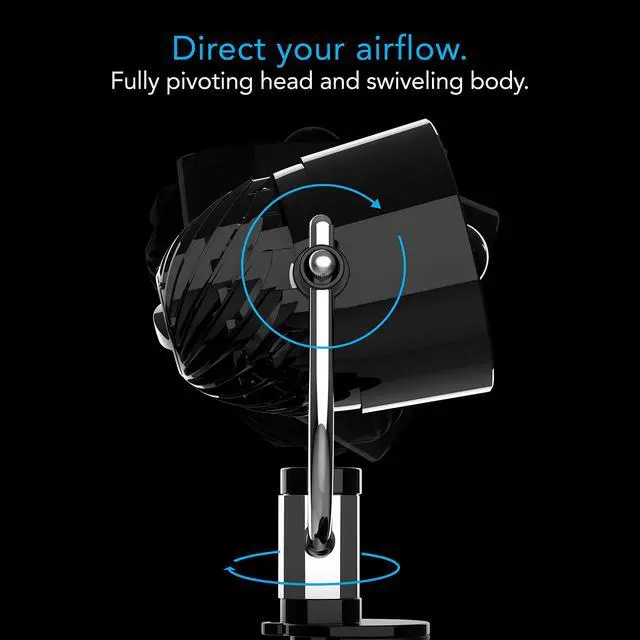 Choose from Pivot Clip's 3 speed settings to dial in your desired airflow and use its pivoting axis to control airflow direction.