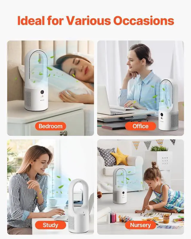 From quiet moments in the bedroom to boosting productivity in the office or enjoying family time in the living room, this bladeless mini desk fan adapts seamlessly to your cooling needs wherever you are.