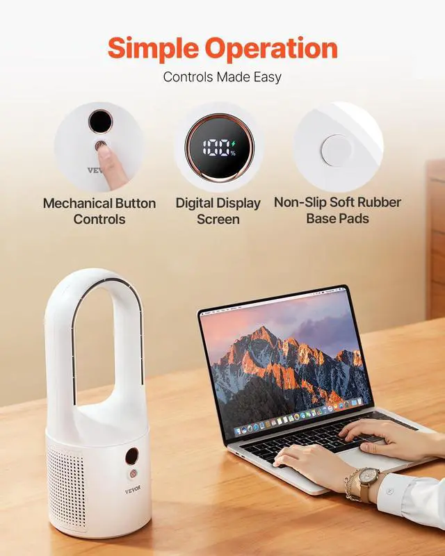 Enjoy intuitive cooling with the button control bladeless quiet office fan. Its one-button design allows easy adjustment of 6 wind speeds, bringing a tech-savvy yet effortless way to stay cool.