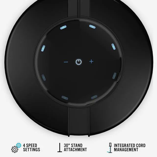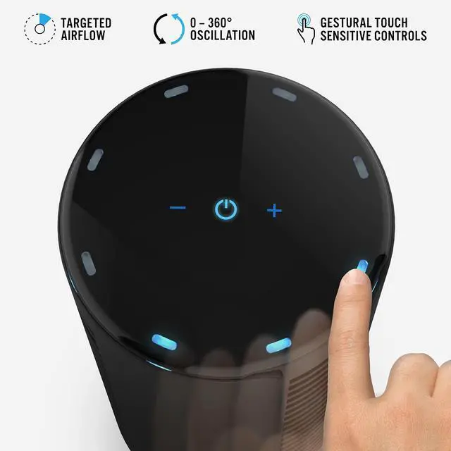 Touch-sensitive controls help tailor your comfort with 4 speed settings while the gestural control activates oscillation with the swipe of your finger.